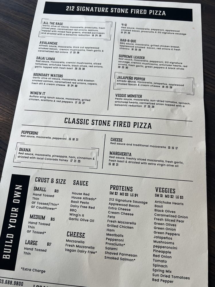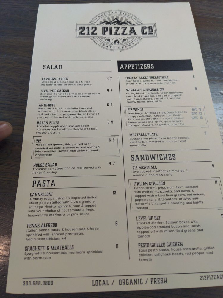 Introducing 212 Pizza Company, a casual dining spot in Castle Rock, CO offering a variety of pizzas with vegan options and limited vegetarian choices. Not only do they provide delivery and takeout services, but they also cater to groups and offer waiter service. The restaurant is wheelchair accessible, has outdoor seating, and even a covered outdoor area for year-round enjoyment. Customers rave about the delicious, high-quality toppings and cheese on the pizzas, as well as the friendly service from the owners and staff. With a focus on using local and organic products, 212 Pizza Company has become a hidden gem in the community. From unique flavors like house-smoked spice wings to classic Hawaiian pizzas, there is something for everyone to enjoy. Consider stopping by for lunch, dinner, or even happy hour specials to taste what this beloved pizza spot has to offer.